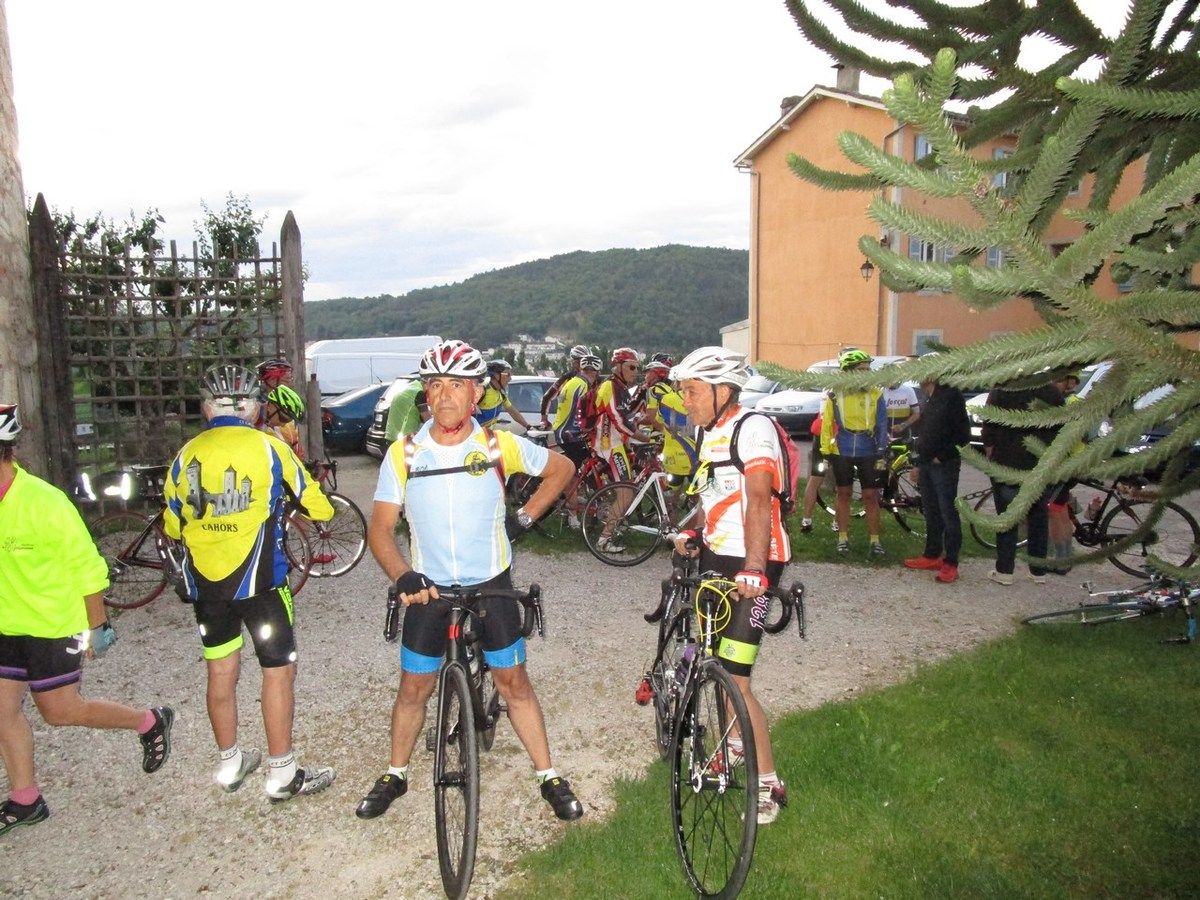 En ce samedi 26 mai 2018, au siège de notre club à La Barbacane, dès 07h00, c'est l'effervescence avant le départ du brevet de 200km. Ils sont vingt-cinq participants décidés à s'élancer sur cette distance. Ce sont des retrouvailles pour certains et probablement des compagnons de route.C'est toujours le même rituel au départ de ces longues randonnées. Chacun s'avance vers la table de remise des cartes de route, une signature, quelques consignes, et pour ceux qui le désirent une tasse de café accompagnée d'une ou plusieurs tranches de cake. Chacun se prépare à sa façon, vérifie plusieurs fois son matériel, inspecte si tout fonctionne bien, les roues, les freins. On tâte ses poches arrière du maillot pour vérifier leur contenu. On ajuste son casque et on positionne ses lunettes. Pas de stress particulier, pas trop d'impatience non plus, juste l'envie de rouler. Avant le départ une petite pause devant l'objectif du photographe pour immortaliser cet instant. La météo est favorable, beau temps, température agréable. Enfin, à 07h30, tout le groupe s'élance pour traverser Cahors en descendant le boulevard Gambetta, direction le Quercy blanc. La route ne s'élève pas beaucoup mais la première partie est exigeante. Heureusement l'arrêt pour un contrôle à Castelnau-Montratier permettra de souffler un instant. Toutefois il va falloir jouer du dérailleur avant de rejoindre Puylaroque pour le second contrôle. Le passage sur le causse de Limogne sera plus aisé, quoi que ? Avant de plonger vers Cajarc certains profiteront de faire une halte casse-croûte. La remontée sur quelques kilomètres de la vallée du Lot, soulageront les jambes. Mais la chaleur s'installe, la température monte aussi dans les corps. La montée vers Faycelles est parfois laborieuse mais Figeac est atteint pour le dernier contrôle.